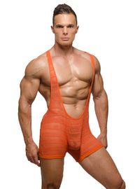 Pride Sheer Mesh Archery Wrestler Leotard - S / ORANGE